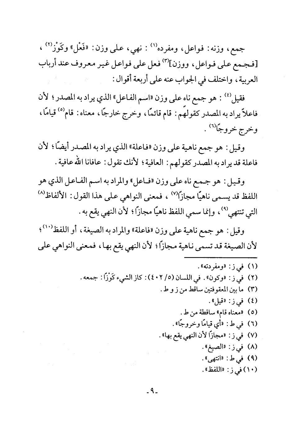 وقيل: هو جمع ناهية على وزن "فاعلة" والمراد به الصيغة، أو اللفظ (١٠)؛ لأن الصيغة قد تسمى ناهية مجازًا؛ لأن النهي يقع بها، فمعنى النواهي على