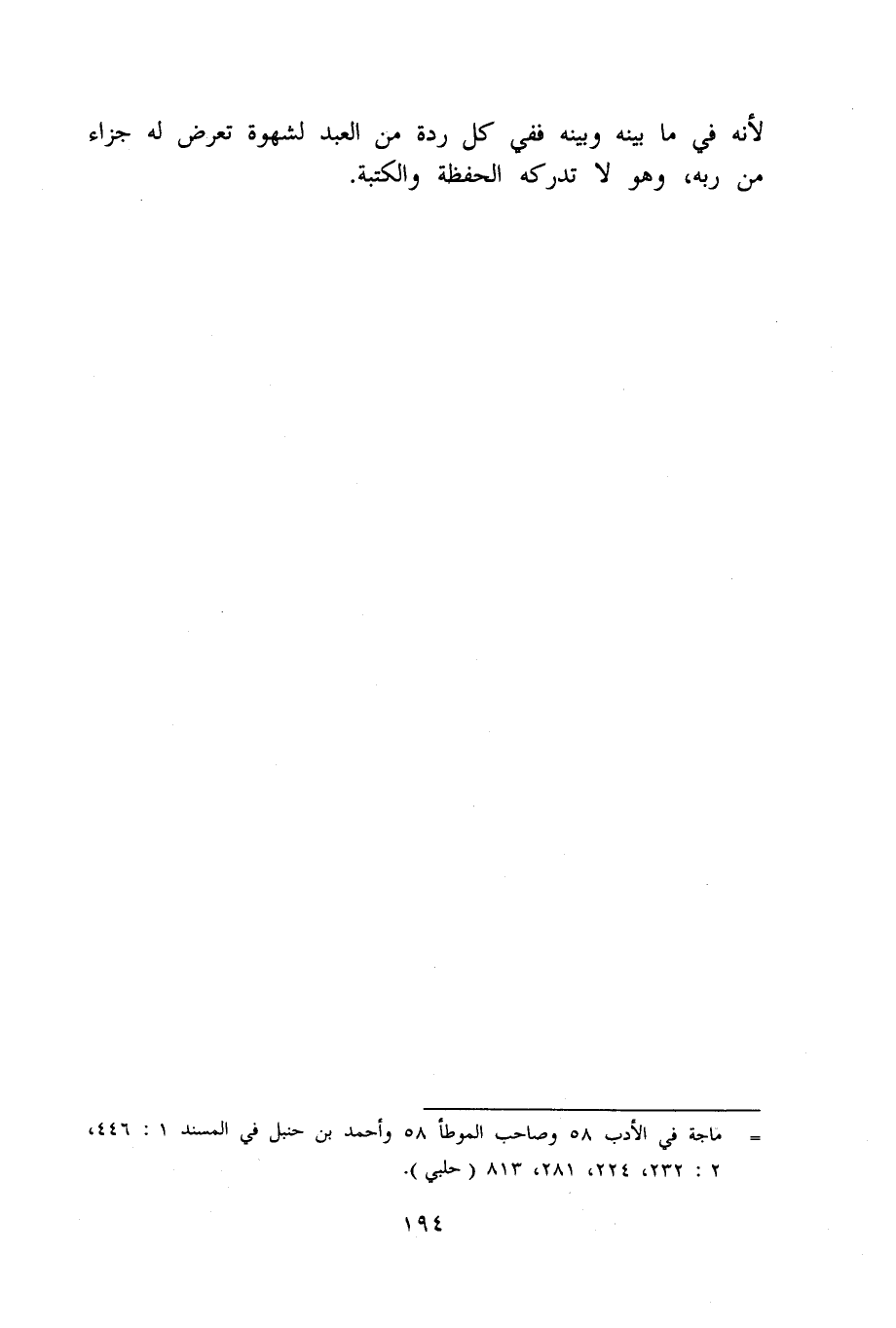 لِأَنَّهُ فِي مَا بَينه وَبَينه فَفِي كل ردة من العَبْد لشهوته تعرض لَهُ جَزَاء من ربه وَهُوَ لَا تُدْرِكهُ الْحفظَة والكتبة
