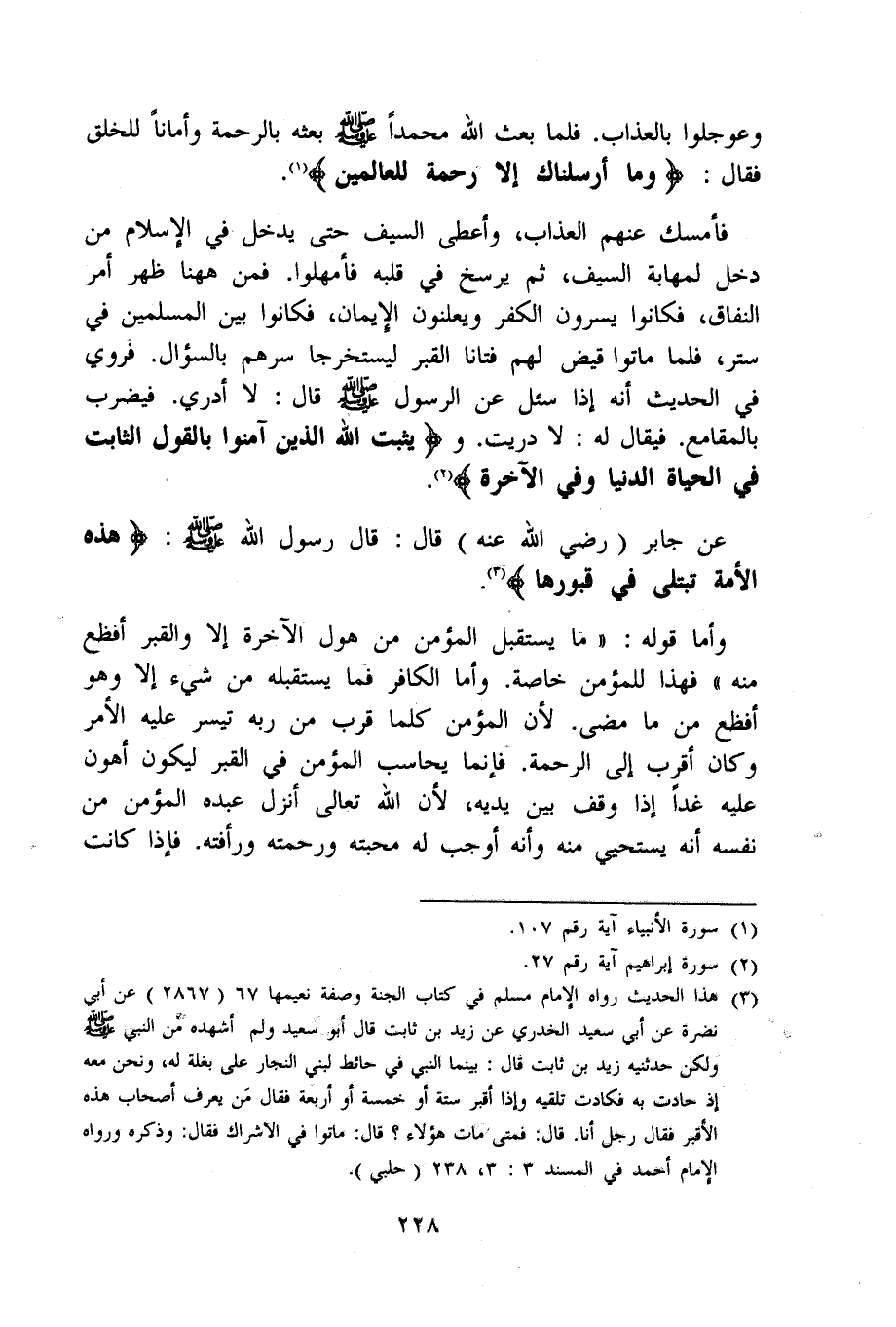 عَن جَابر رَضِي الله عَنهُ قَالَ قَالَ رَسُول الله صلى الله عَلَيْهِ وَسلم هَذِه الْأمة تبتلى فِي قبورها