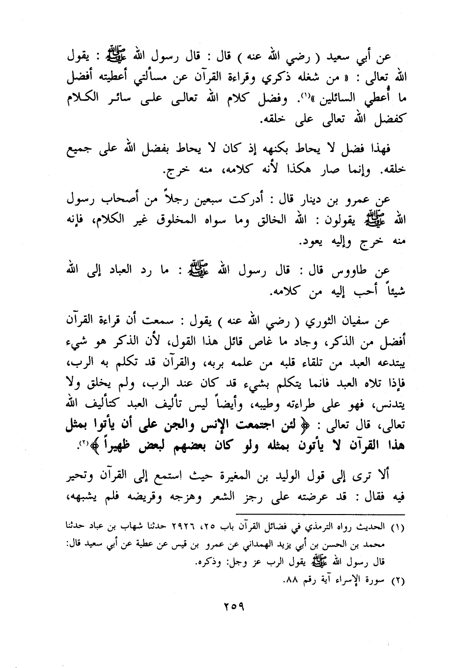 فَهَذَا فضل لَا يحاط بكنهه إِذْ كَانَ لَا يحاط بِفضل الله على جَمِيع خلقه وَإِنَّمَا صَار هَكَذَا لِأَنَّهُ كَلَامه مِنْهُ خرج