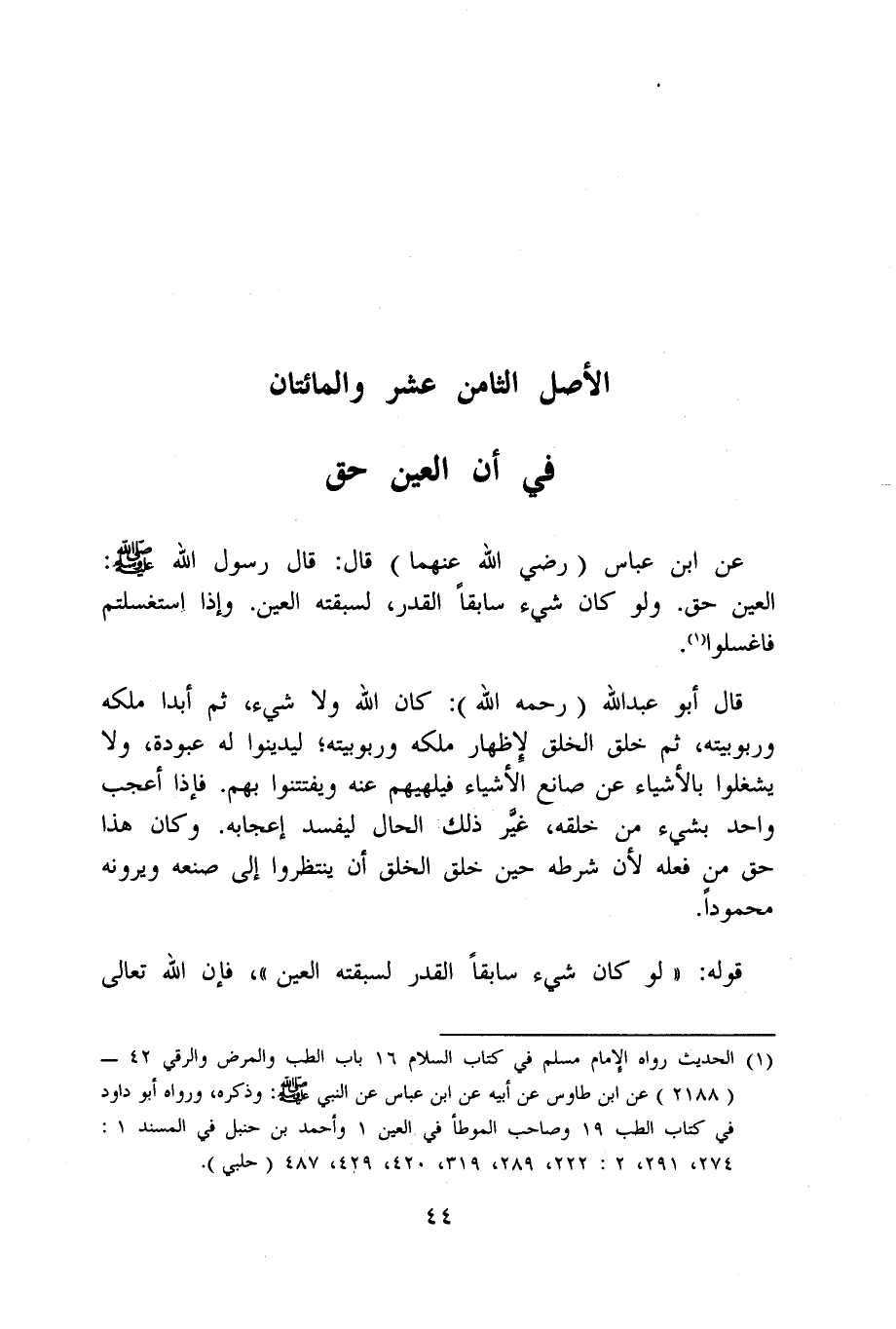 عَن ابْن عَبَّاس رَضِي الله عَنْهُمَا قَالَ قَالَ رَسُول الله صلى الله عَلَيْهِ وَسلم (الْعين حق وَلَو كَانَ شَيْء سَابِقًا الْقدر لسبقه الْعين وَإِذا استغسلتم فَاغْسِلُوا)