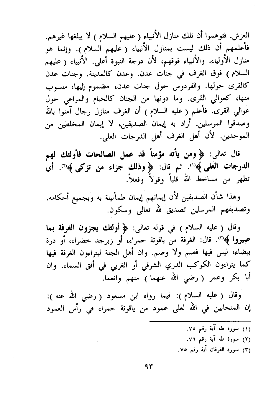 قَالَ تَعَالَى {وَمن يَأْته مُؤمنا قد عمل الصَّالِحَات فَأُولَئِك لَهُم الدَّرَجَات العلى} ثمَّ قَالَ {وَذَلِكَ جَزَاء من تزكّى} أَي تطهر من مساخط الله قلبا وقولا وفعلا