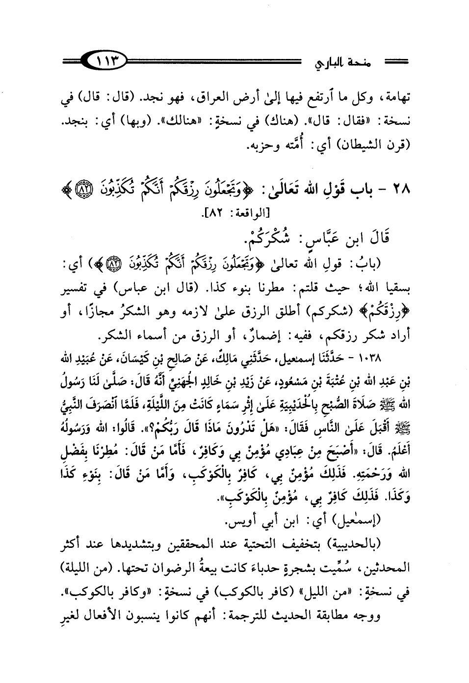 28 - بَابُ قَوْلِ اللَّهِ تَعَالى: {وَتَجْعَلُونَ رِزْقَكُمْ أَنَّكُمْ تُكَذِّبُونَ} [الواقعة: 82]