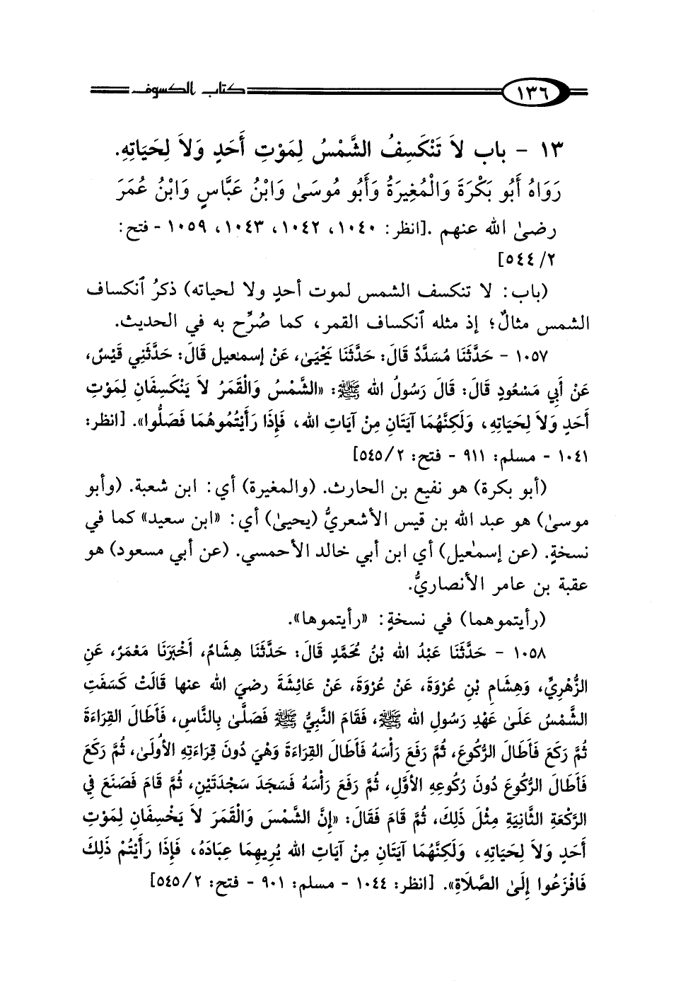 13 - بَابٌ: لَا تَنْكَسِفُ الشَّمْسُ لِمَوْتِ أَحَدٍ وَلَا لِحَيَاتِهِ
