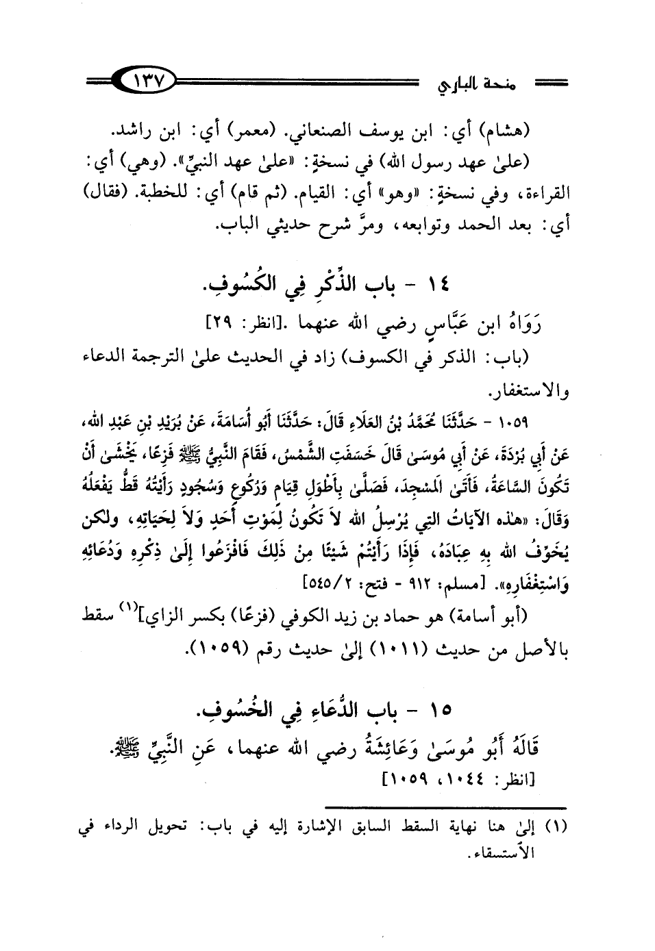 14 - بَابُ الذِّكْرِ فِي الكُسُوفِ