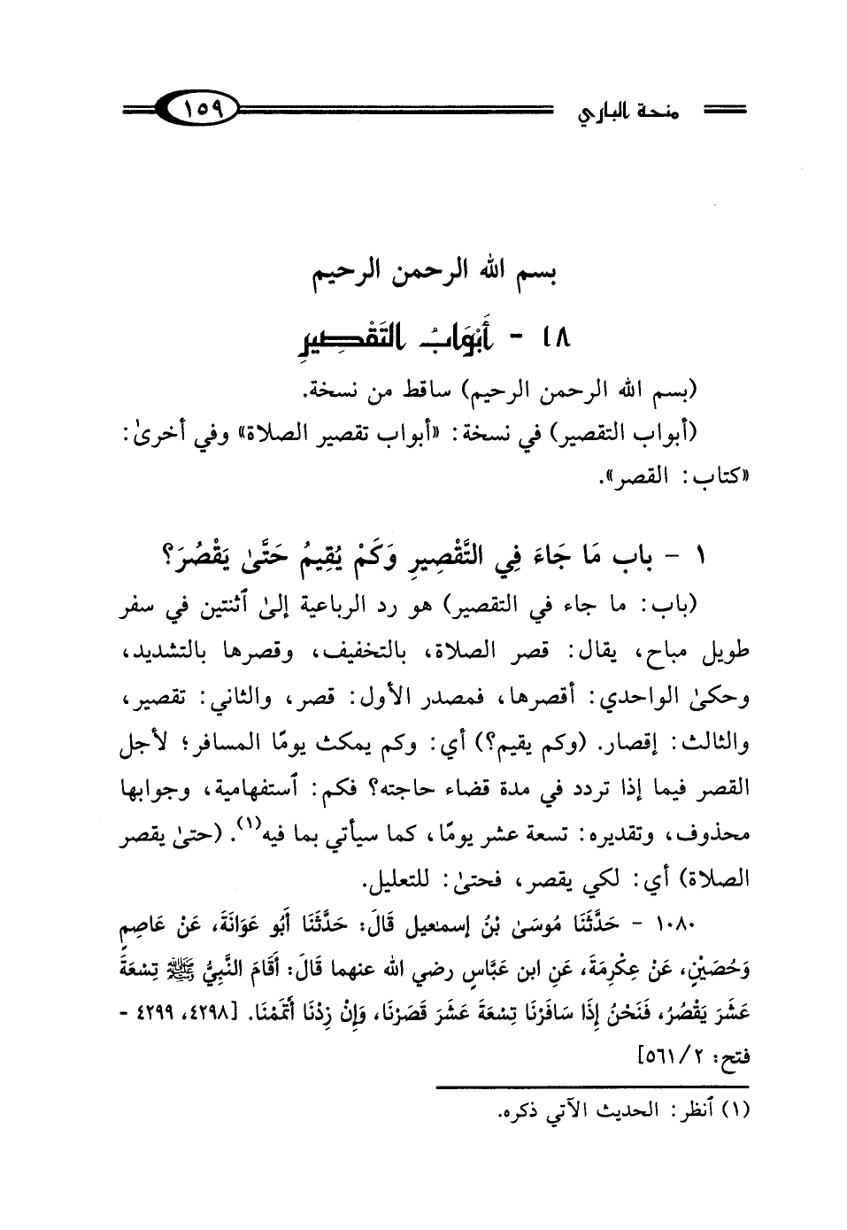 18 - أَبْوَابُ تَقْصِيرِ الصَّلاةِ