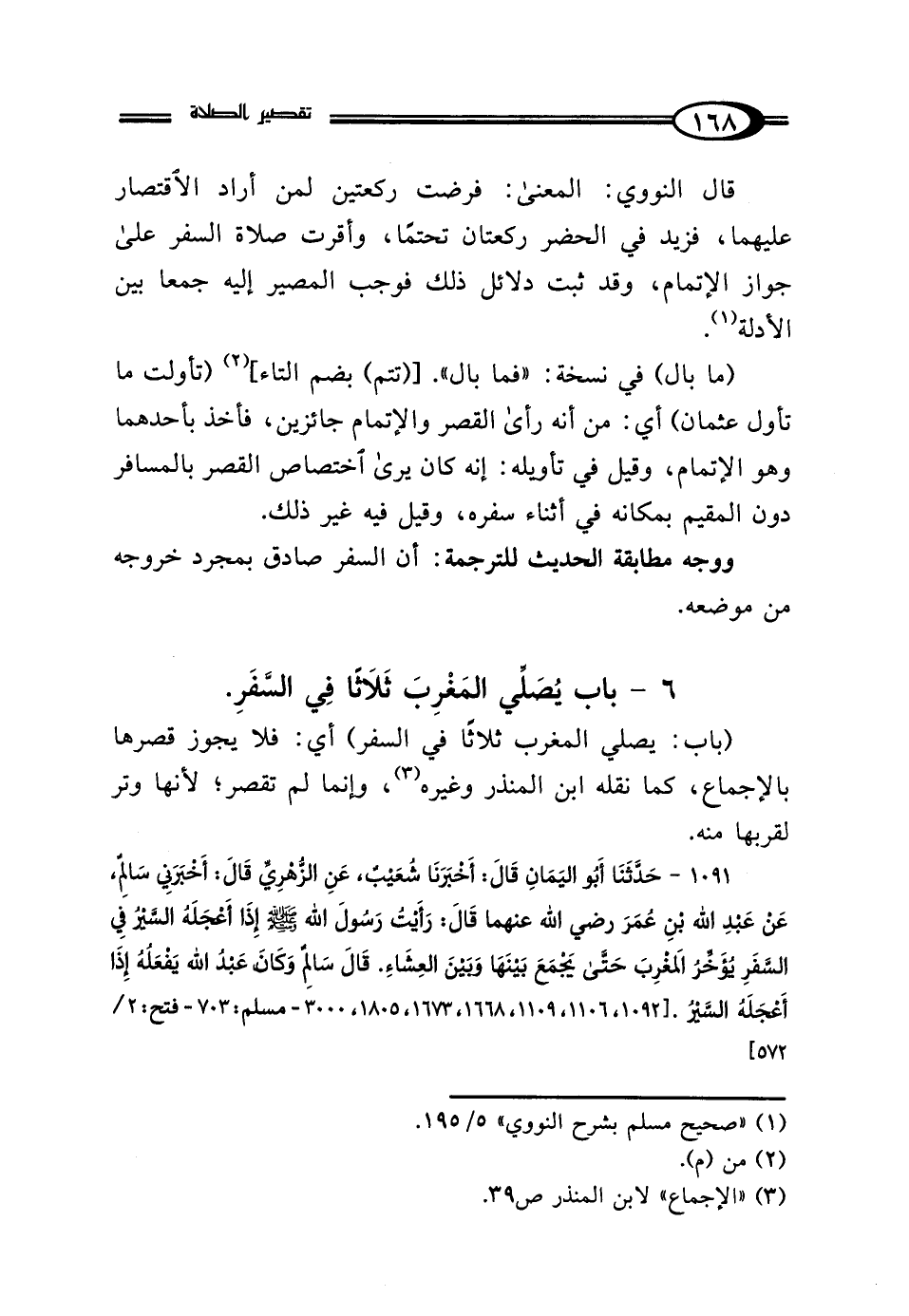 6 - بَابُ يُصَلِّي المَغْرِبَ ثَلاثًا فِي السَّفَرِ