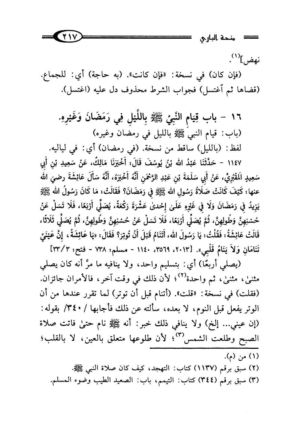 (¬2) سبق برقم (1137) كتاب: التهجد، كيف كان صلاة النبي - صلى الله عليه وسلم -.