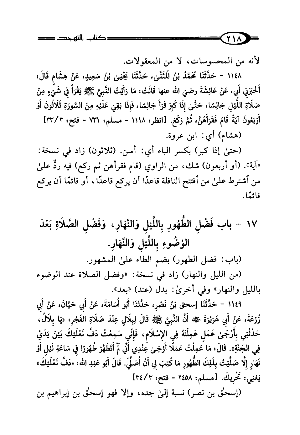 17 - بَابُ فَضْلِ الطُّهُورِ بِاللَّيْلِ وَالنَّهَارِ، وَفَضْلِ الصَّلاةِ بَعْدَ الوُضُوءِ بِاللَّيْلِ وَالنَّهَارِ