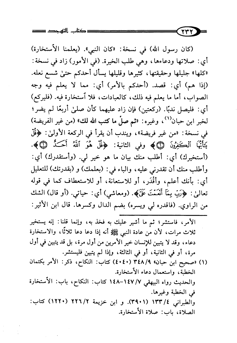 (إذا هم) أي: قصد. (أحدكم بالأمر) أي: مما لا يعلم فيه وجه الصواب، أما ما يعلم فيه ذلك، كالعبادات، فلا استخارة فيه. (فليركع) أي: فليصل ندبًا. (ركعتين) فإن زاد عليهما كان صلى أربعًا لم يضر؛ لخبر ابن حبان (¬1)، وغيره: "ثم صل ما كتب اللَّه لك" (من غير الفريضة) في نسخة: "من غير فريضة"، ويندب أن يقرأ في الركعة الأولى: {قُلْ يَا أَيُّهَا الْكَافِرُونَ (1)} وفي الثانية: {قُلْ هُوَ اللَّهُ أَحَدٌ (1)}. (أستخيرك) أي: أطلب منك بيان ما هو خير لي. (وأستقدرك) أي: وأطلب منك أن تقدرني عليه، والباء في: (بعلمك) و (بقدرتك) للتعليل أي: بأنك أعلم، وأقْدَر، أو للاستعانة، أو للاستعطاف كما في قوله تعالى: {رَبِّ بِمَا أَنْعَمْتَ عَلَيَّ}. (ومعاشي) أي: حياتي. (أو قال) الشك من الراوي. (فاقدره لي وشره) بضم الدال وكسرها. قال ابن الأثير: