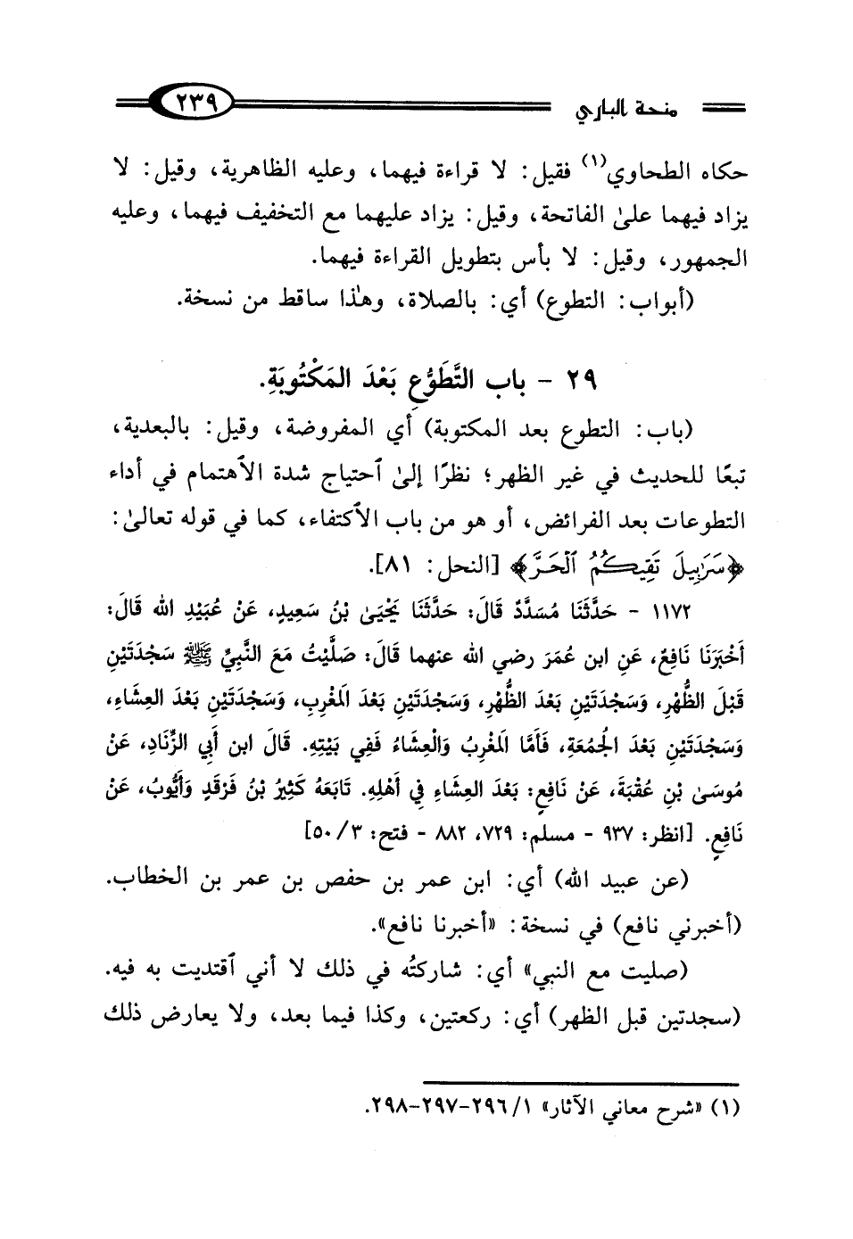 (¬1) "شرح معاني الآثار" 1/ 296 - 297 - 298.