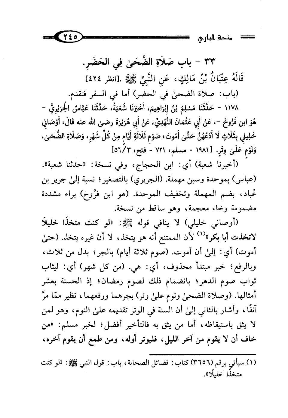 (¬1) سيأتيِ برقم (3656) كتاب: فضائل الصحابة، باب: قول النبي - صلى الله عليه وسلم -: "لو كنت متخذًا خليلًا".