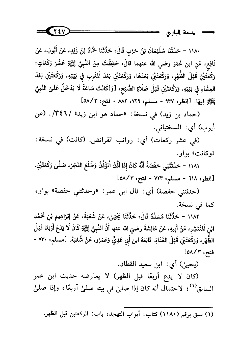 (¬1) سبق برقم (1180) كتاب: أبواب التهجد، باب: الركعتين قبل الظهر.