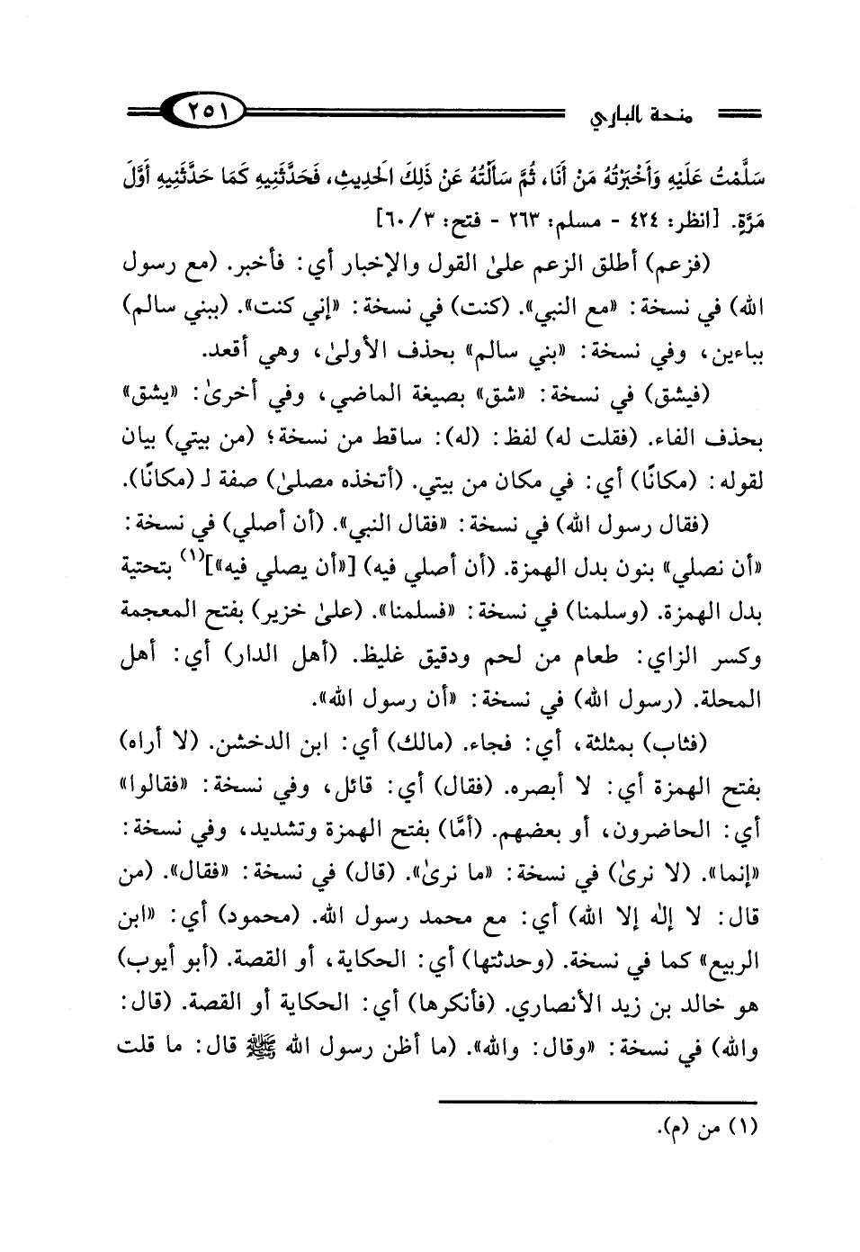 (فقال رسول الله) في نسخة: "فقال النبي". (أن أصلي) في نسخة: "أن نصلي" بنون بدل الهمزة. (أن أصلي فيه) ["أن يصلي فيه"] (¬1) بتحتية بدل الهمزة. (وسلمنا) في نسخة: "فسلمنا". (على خزير) بفتح المعجمة وكسر الزاي: طعام من لحم ودقيق غليظ. (أهل الدار) أي: أهل المحلة. (رسول الله) في نسخة: "أن رسول الله".