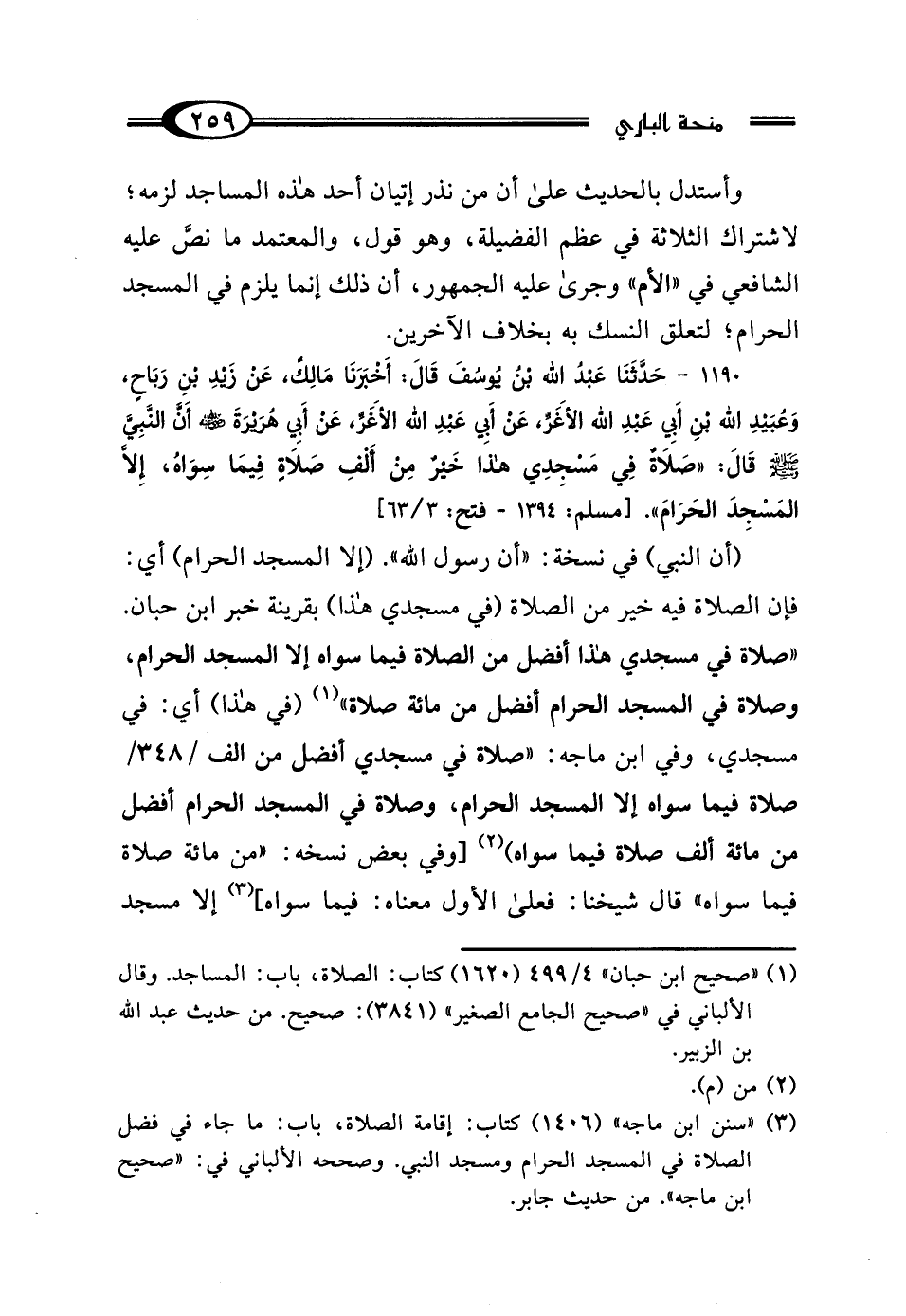 (¬3) "سنن ابن ماجه" (1406) كتاب: إقامة الصلاة، باب: ما جاء في فضل الصلاة في المسجد الحرام ومسجد النبي. وصححه الألباني في: "صحيح ابن ماجه". من حديث جابر.