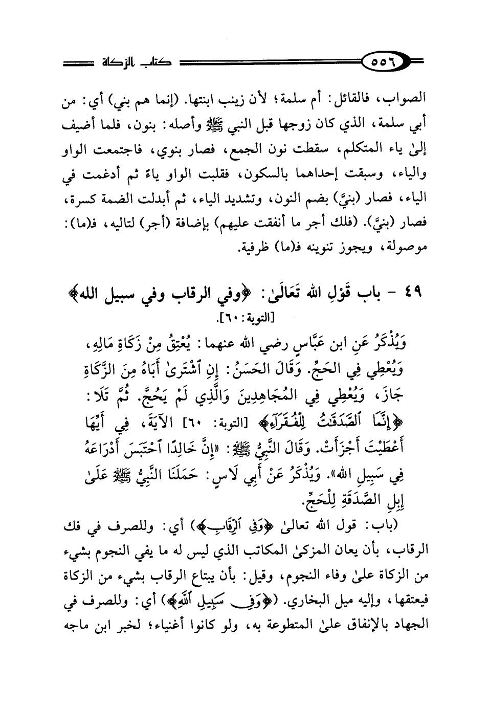 49 - بَابُ قَوْلِ اللَّهِ تَعَالى: {وَفِي الرِّقَابِ وَالغَارِمِينَ وَفِي سَبِيلِ اللَّهِ} [التوبة: 60]