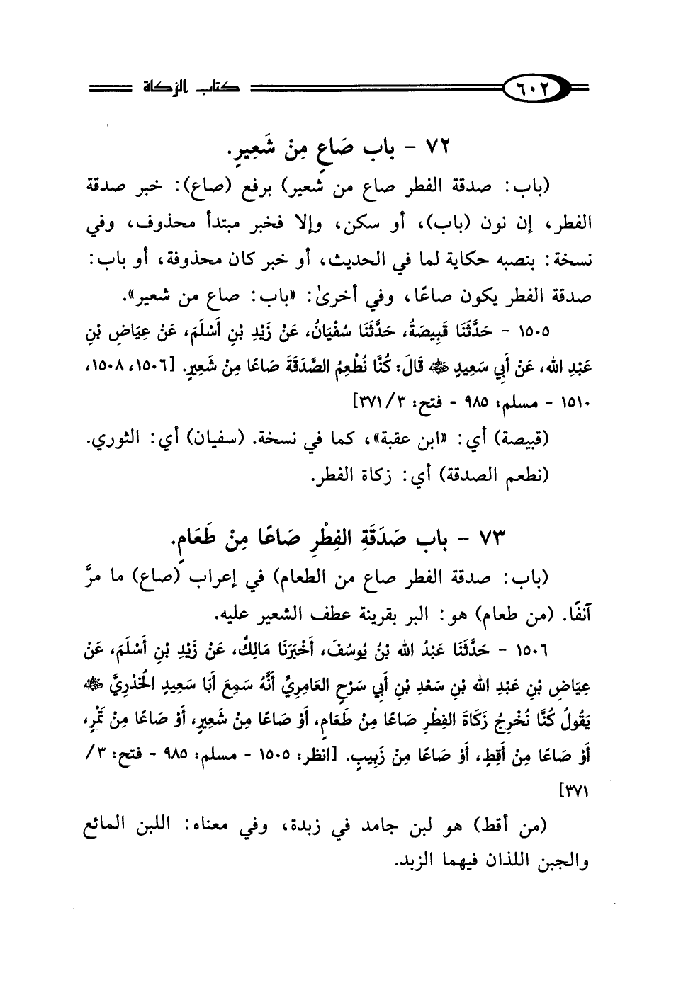 72 - بَابٌ: صَدَقَةُ الفِطْرِ صَاعٌ مِنْ شَعِيرٍ