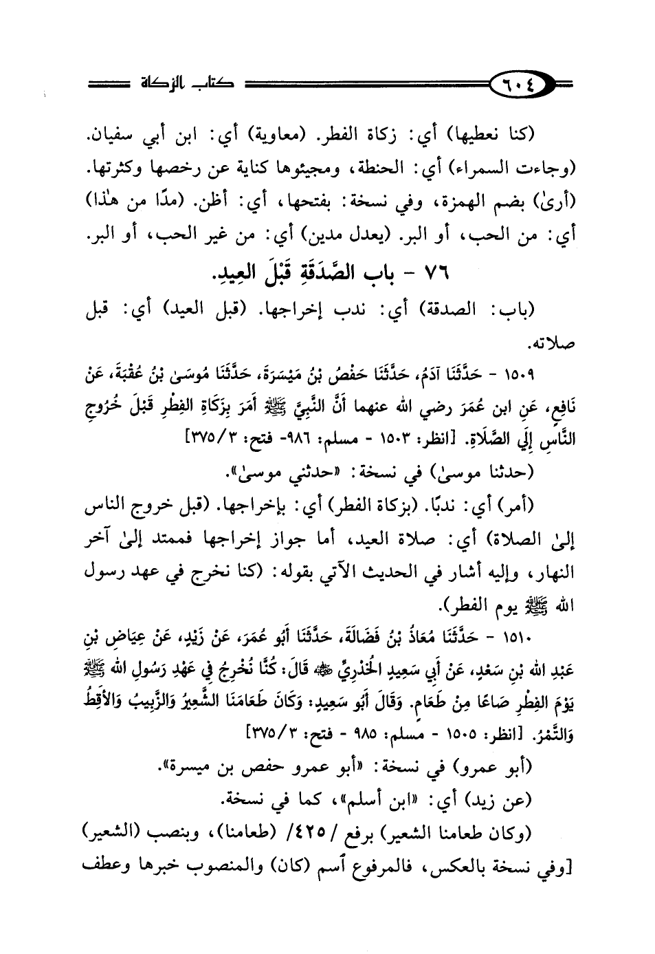 76 - بَابُ الصَّدَقَةِ قَبْلَ العِيدِ