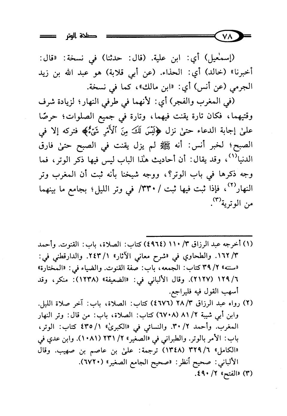 (¬2) رواه عبد الرزاق 3/ 28 (4676) كتاب: الصلاة، باب: آخر صلاة الليل. وابن أبي شيبة 2/ 81 (6708) كتاب: الصلاة، باب: من قال: وتر النهار المغرب. وأحمد 2/ 30. والنسائي في "الكبرى" 1/ 435 كتاب: الوتر، باب: الأمر بالوتر. والطبراني في "الصغير" 2/ 231 (1081). وابن عدي في "الكامل " 6/ 329 (1348) ترجمة: علي بن عاصم بن صهيب. وقال الألباني: صحيح انظر: "صحيح الجامع الصغير" (6720).
