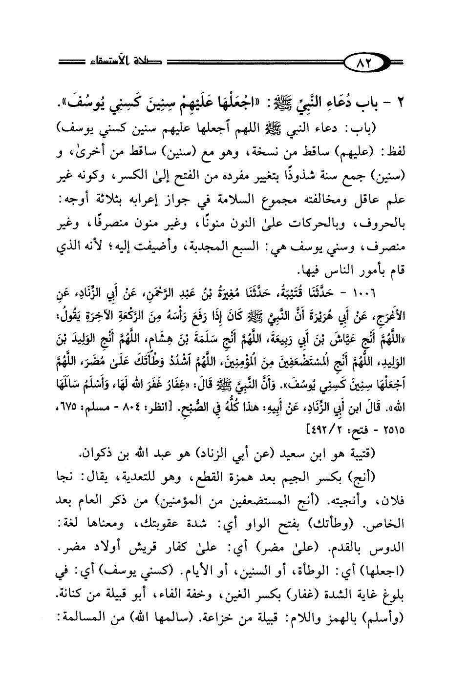 2 - بَابُ دُعَاءِ النَّبِيِّ صَلَّى اللهُ عَلَيْهِ وَسَلَّمَ: "اجْعَلْهَا عَلَيْهِمْ سِنِينَ كَسِنِي يُوسُفَ"