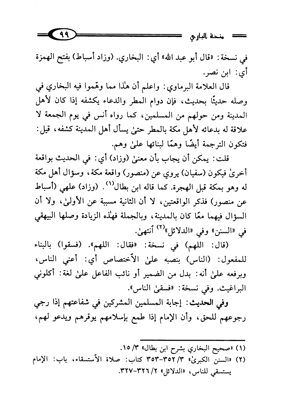 (¬2) "السنن الكبرى" 3/ 352 - 353 كتاب: صلاة الاستسقاء، باب: الإمام يستسقي للناس، "الدلائل" 2/ 326 - 327.