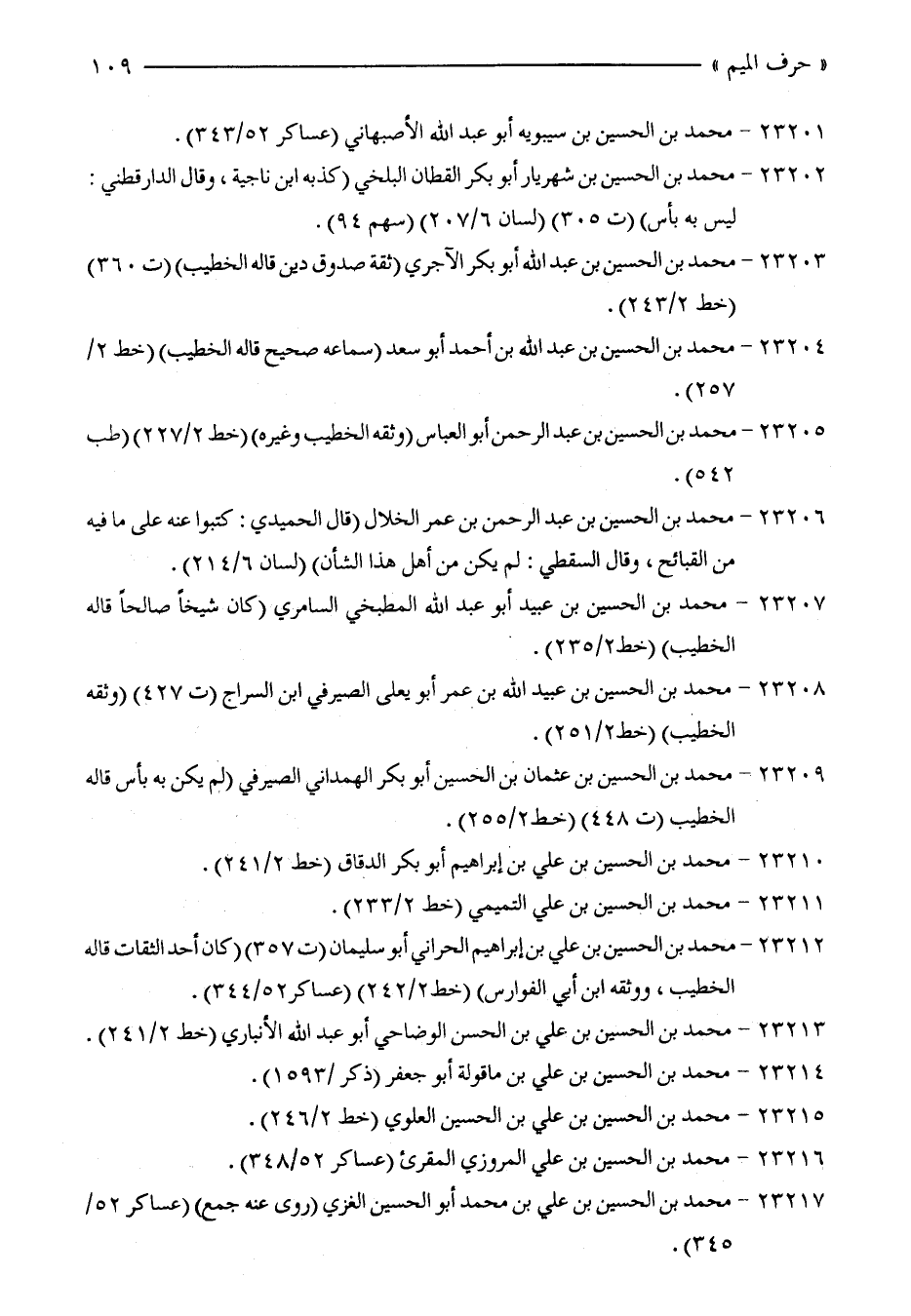 23205 - محمد بن الحسين بن عبد الرحمن أبو العباس (وثقه الخطيب وغيره) (خط 2/ 227) (طب 257).