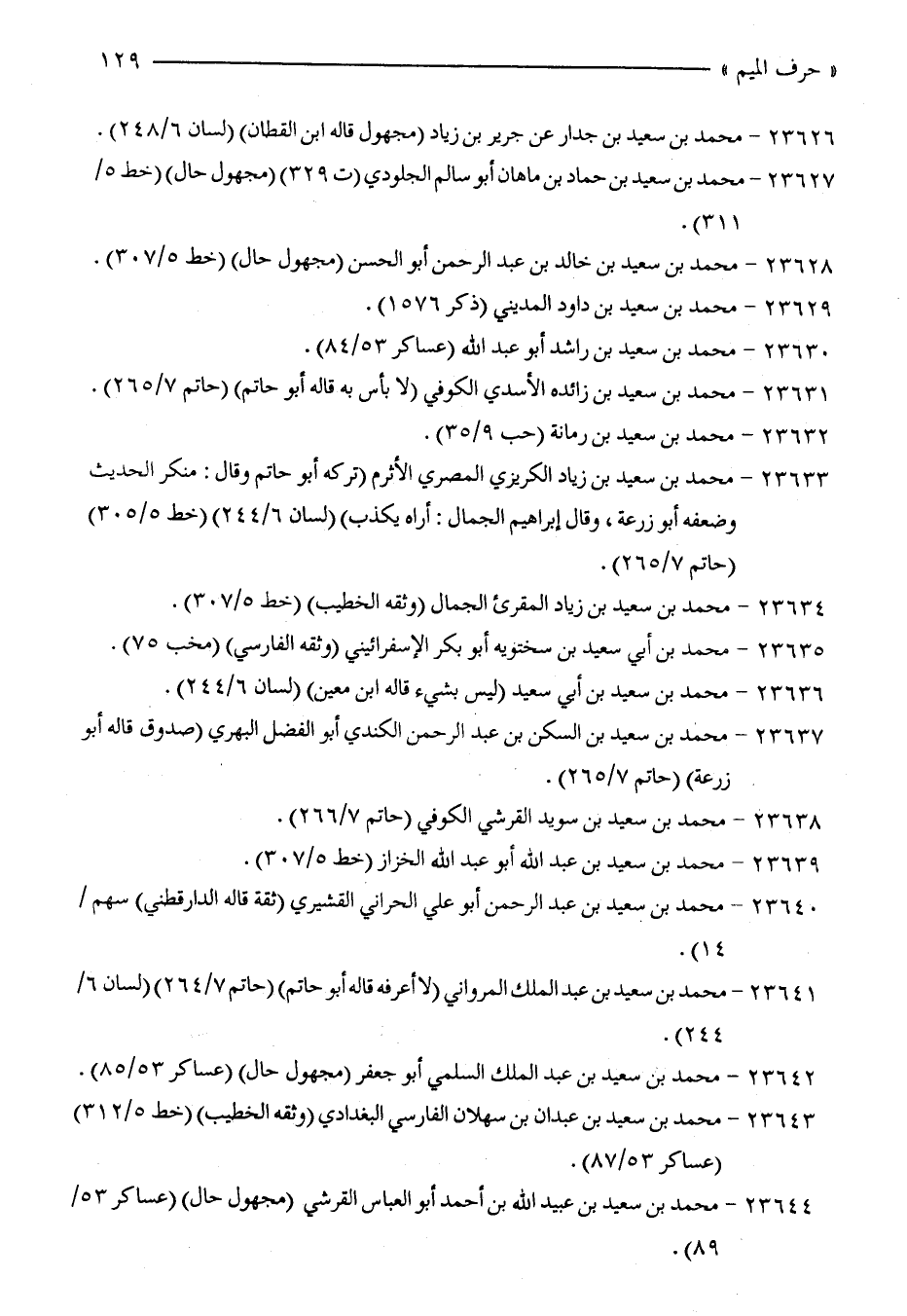 23628 - محمد بن سعيد بن خالد بن عبد الرحمن أبو الحسن (مجهول حال) (خط 5/ 307).