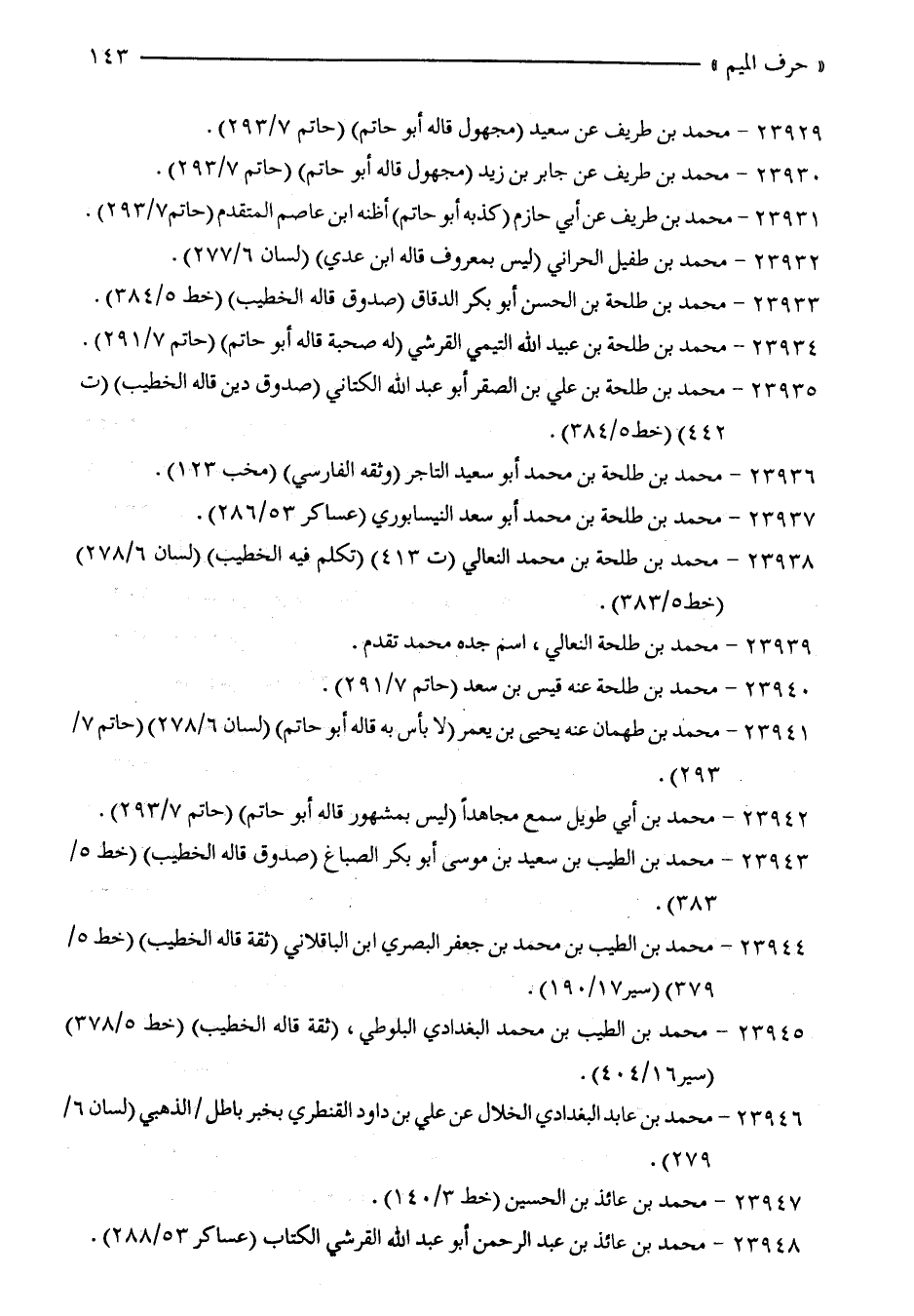 23933 - محمد بن طلحة بن الحسن أبو بكر الدقاق (صدوق قاله الخطيب) (خط 5/ 384).
