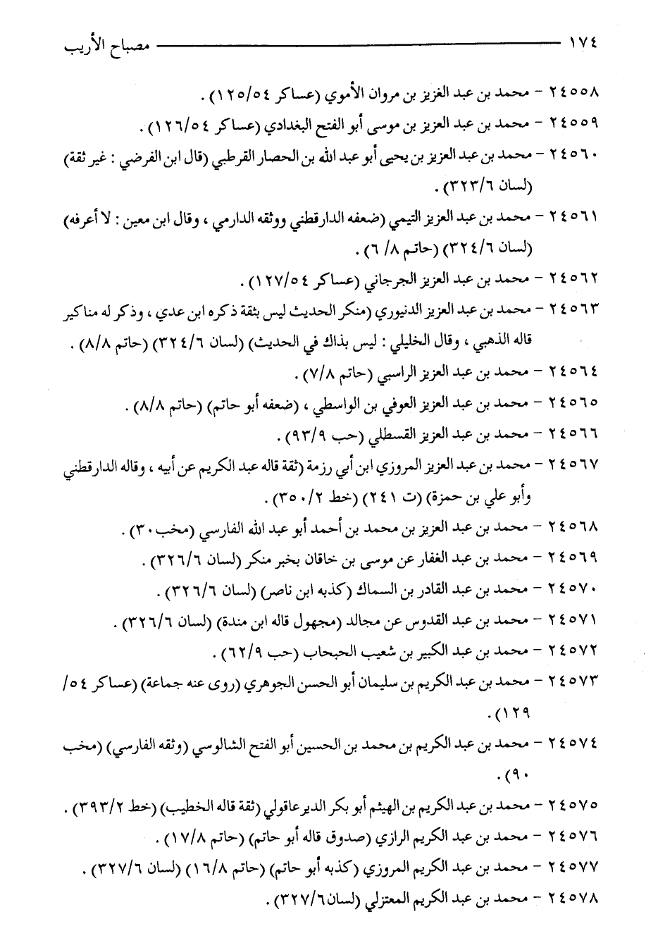 24560 - محمد بن عبد العزيز بن يحيى أبو عبد الله بن الحصار القرطبي (قال ابن الفرضي: غير ثقة) (لسان 6/ 323).