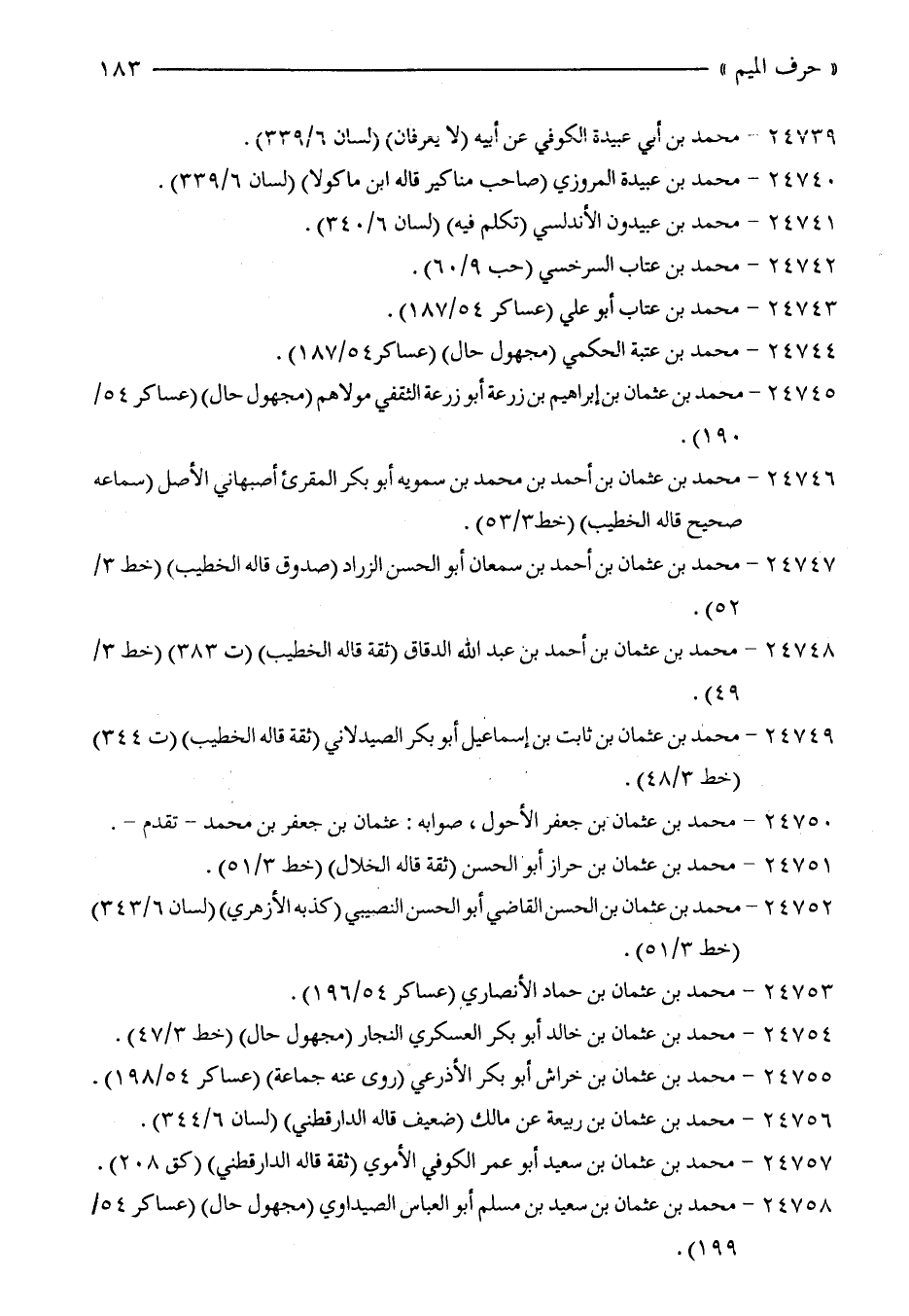 24754 - محمد بن عثمان بن خالد أبو بكر العسكري النجار (مجهول حال) (خط 3/ 47).