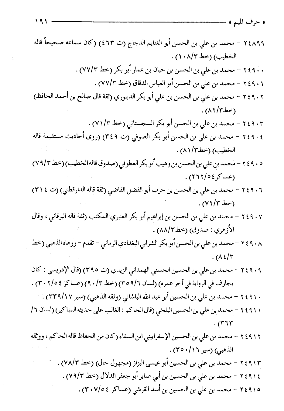 24912 - محمد بن علي بن الحسين الإسفراييني ابن السقاء (كان من الحفاظ قاله الحاكم، ووثقه الذهبي) (سير 16/ 350).