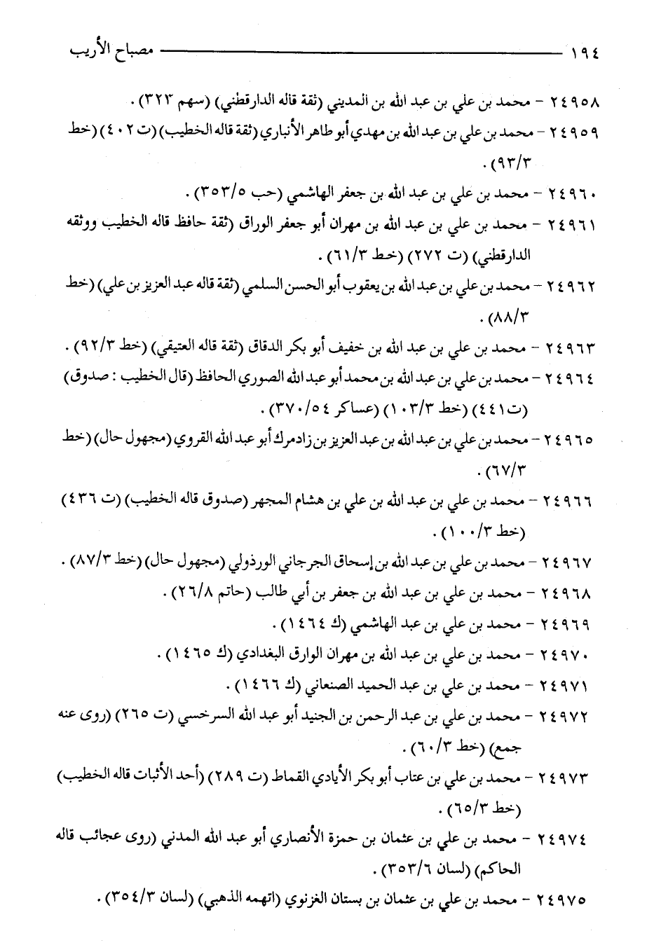 24966 - محمد بن علي بن عبد الله بن علي بن هشام المجهر (صدوق قاله الخطيب) (ت 436) (خط 3/ 100).