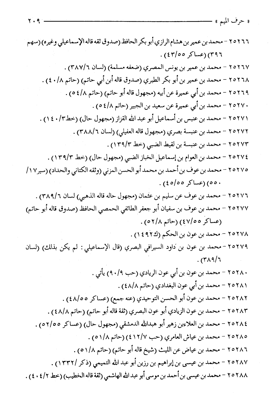 25266 - محمد بن عمير بن هشام الرازي أبو بكر الحافظ (صدوق ثقه قاله الإسماعيلي: غيره) (سهم 396) (عساكر 55/ 43).
