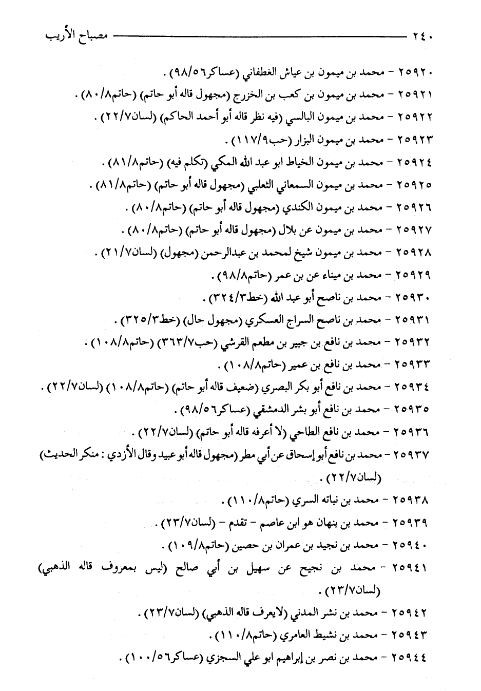 25931 - محمد بن ناصح السراج العسكري (مجهول حال) (خط 3/ 325).