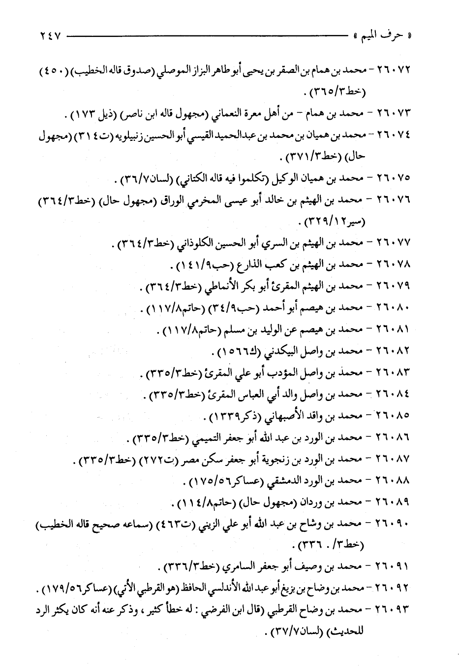 26093 - محمد بن وضاح القرطبي (قال ابن الفرضي: له خطأ كثير، وذكر عنه أنه كان يكثر الرد للحديث) (لسان 7/ 37).