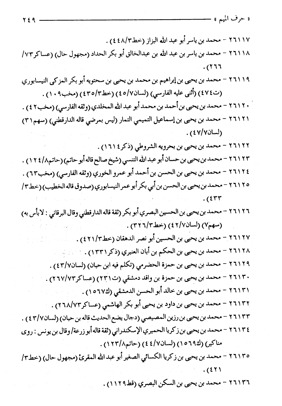26126 - محمد بن يحيى بن الحسين البصري أبو بكر (ثقة قاله الدارقطني وقال البرقاني: لا بأس به) (سهم 7) (لسان 7/ 42) (خط 3/ 326).