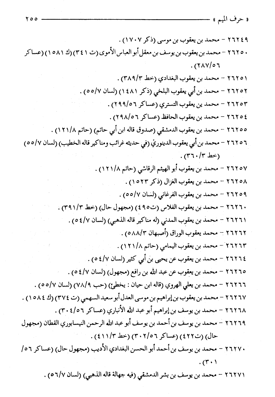 26256 - محمد بن أبي يعقوب الدينوري (في حديثه غرائب ومناكير قاله الخطيب) (لسان 55/ 7) (خط 3/ 360).
