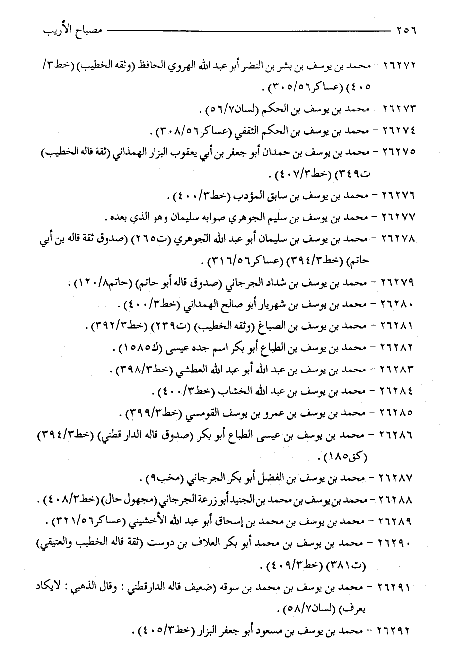 26281 - محمد بن يوسف بن الصباغ (وثقه الخطيب) (ت 239) (خط 3/ 392).
