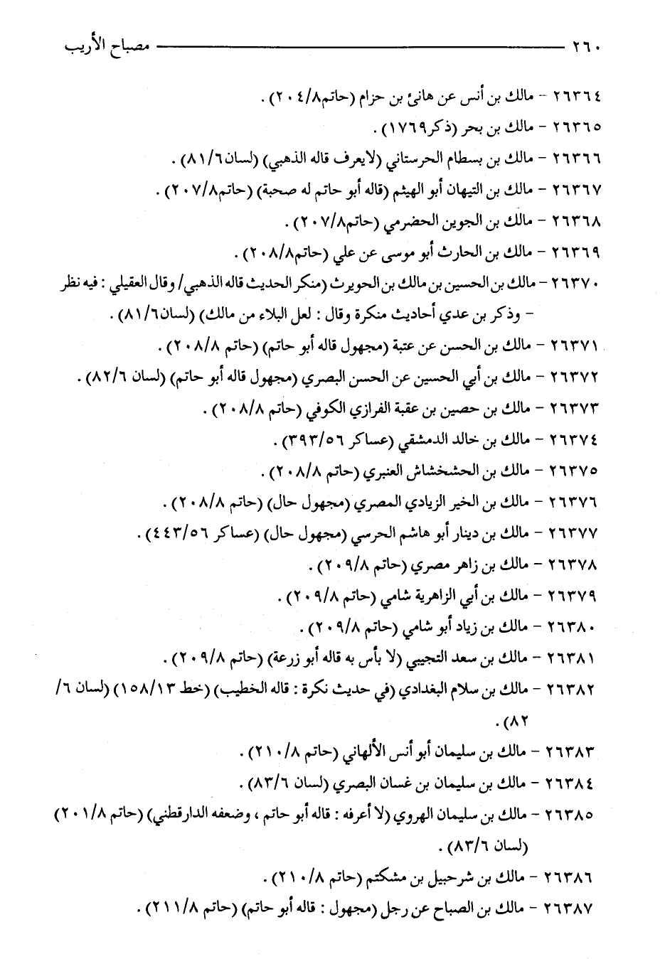 26387 - مالك بن الصباح عن رجل (مجهول: قاله أبو حاتم) (حاتم 8/ 211).