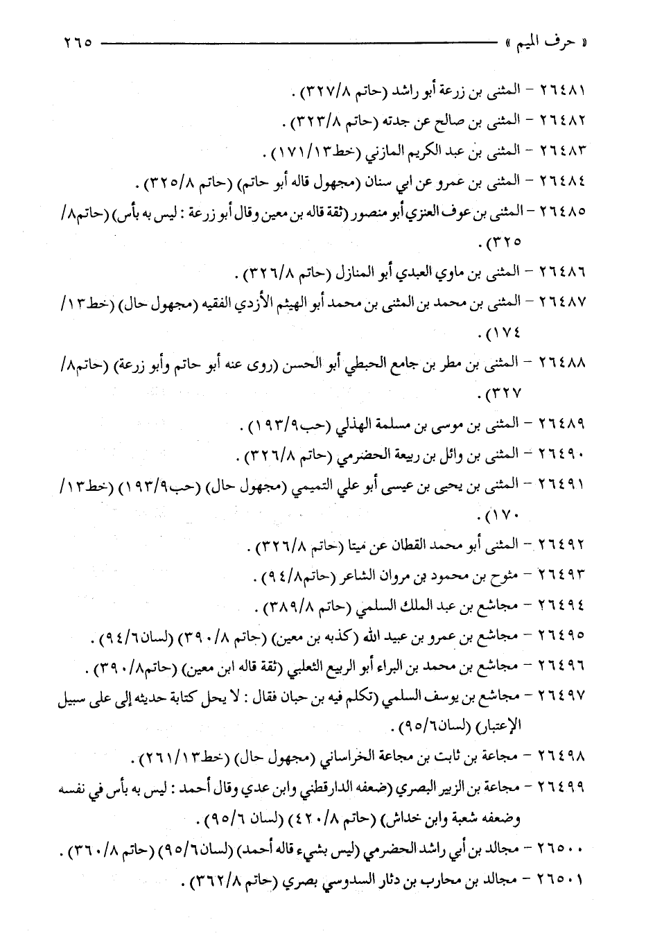 26487 - المثنى بن محمد بن المثنى بن محمد أبو الهيثم الأزدي الفقيه (مجهول حال) (خط 13/ 174).