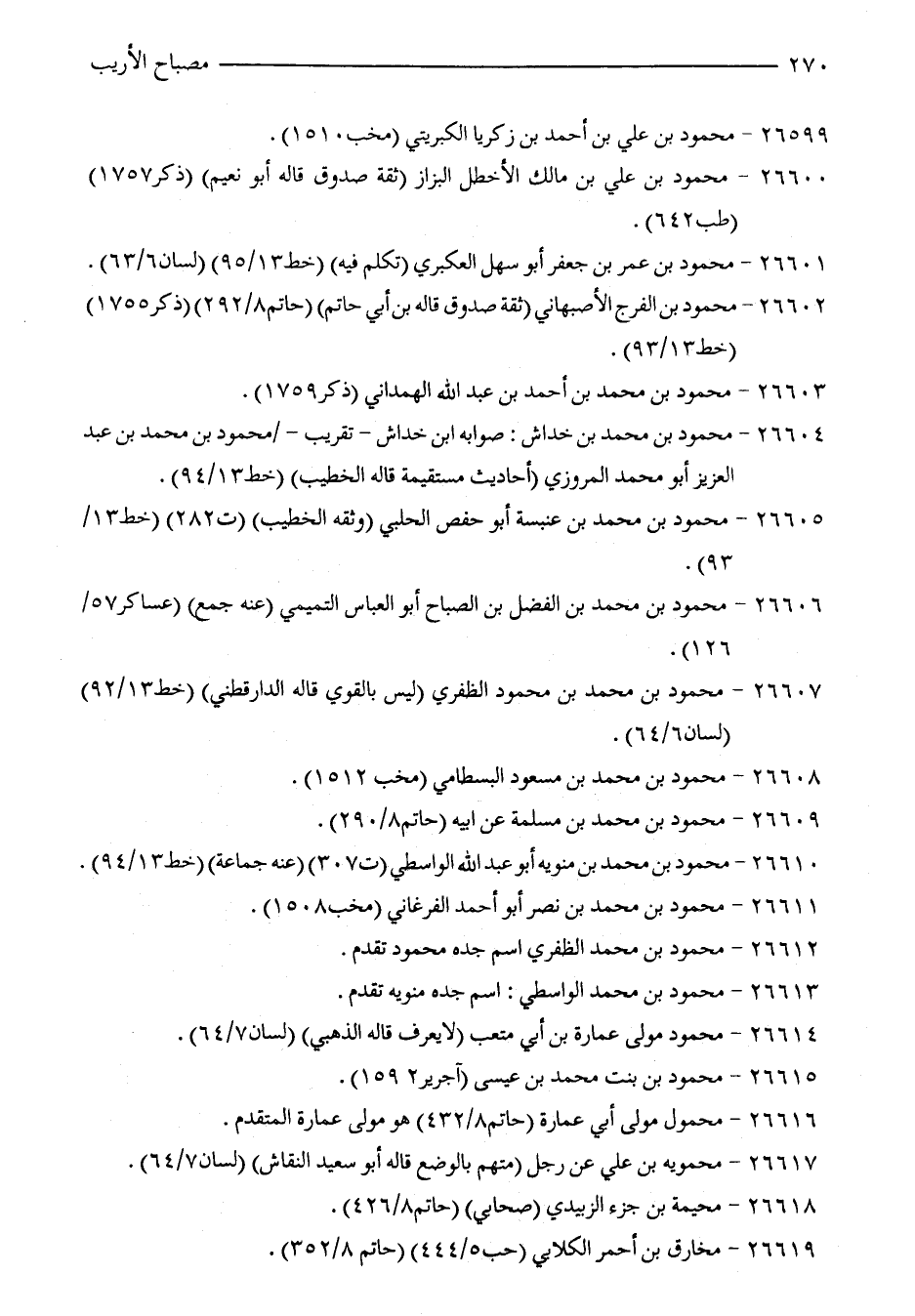 26602 - محمود بن الفرج الأصبهاني (ثقة صدوق قاله بن أبي حاتم) (حاتم 8/ 292) (ذكر 1755) (خط 13/ 93).