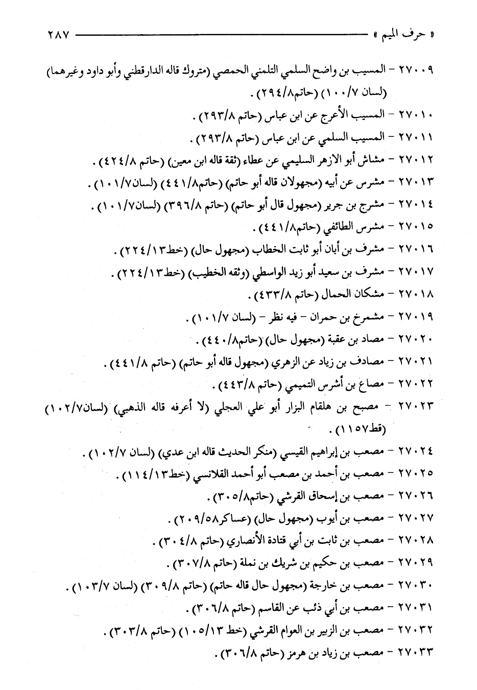 27032 - مصعب بن الزبير بن العوام القرشي (خط 13/ 105) (حاتم 8/ 303).