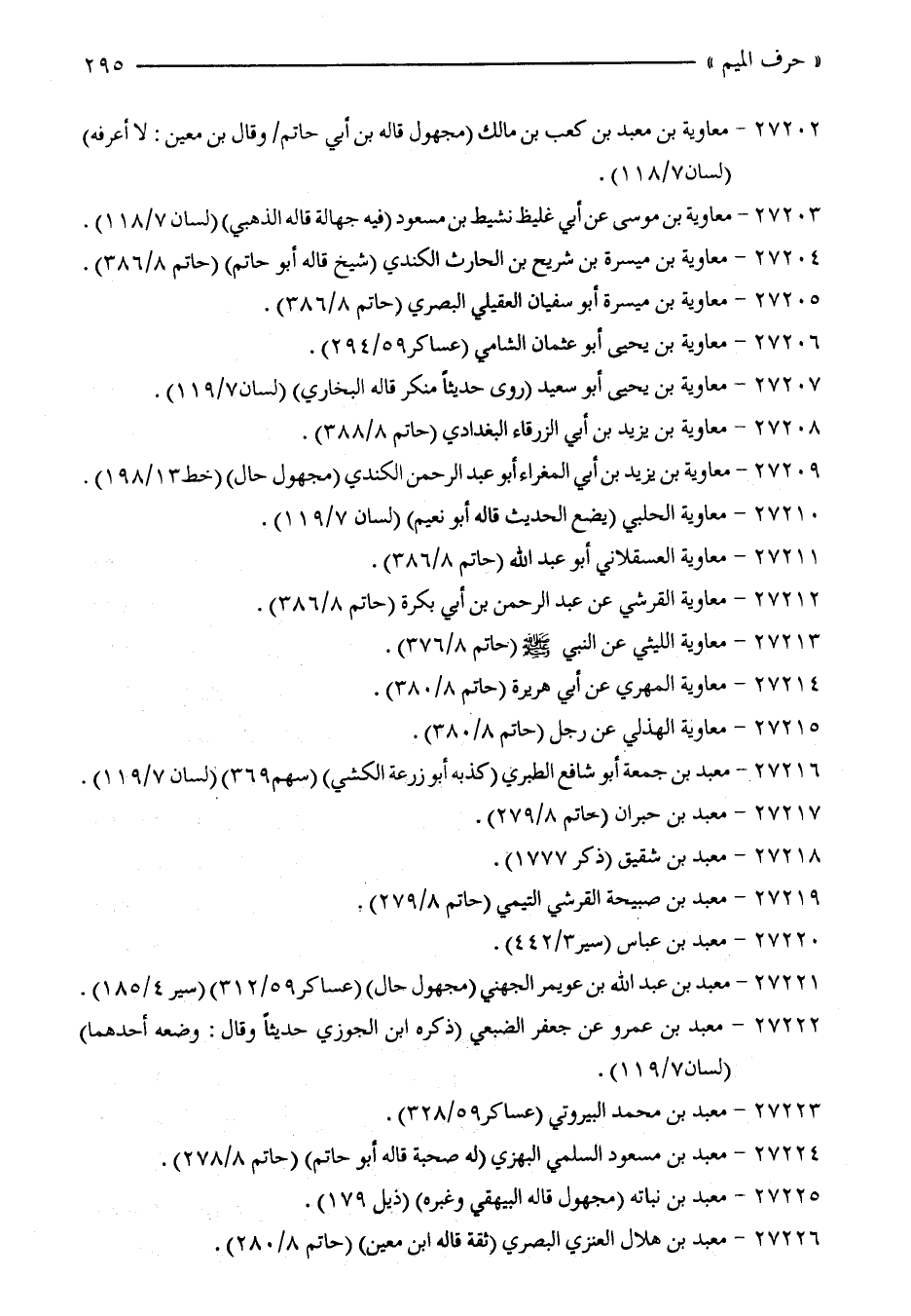 27202 - معاوية بن معبد بن كعب بن مالك (مجهول قاله بن أبي حاتم/ وقال بن معين: لا أعرفه) (لسان 7/ 118).
