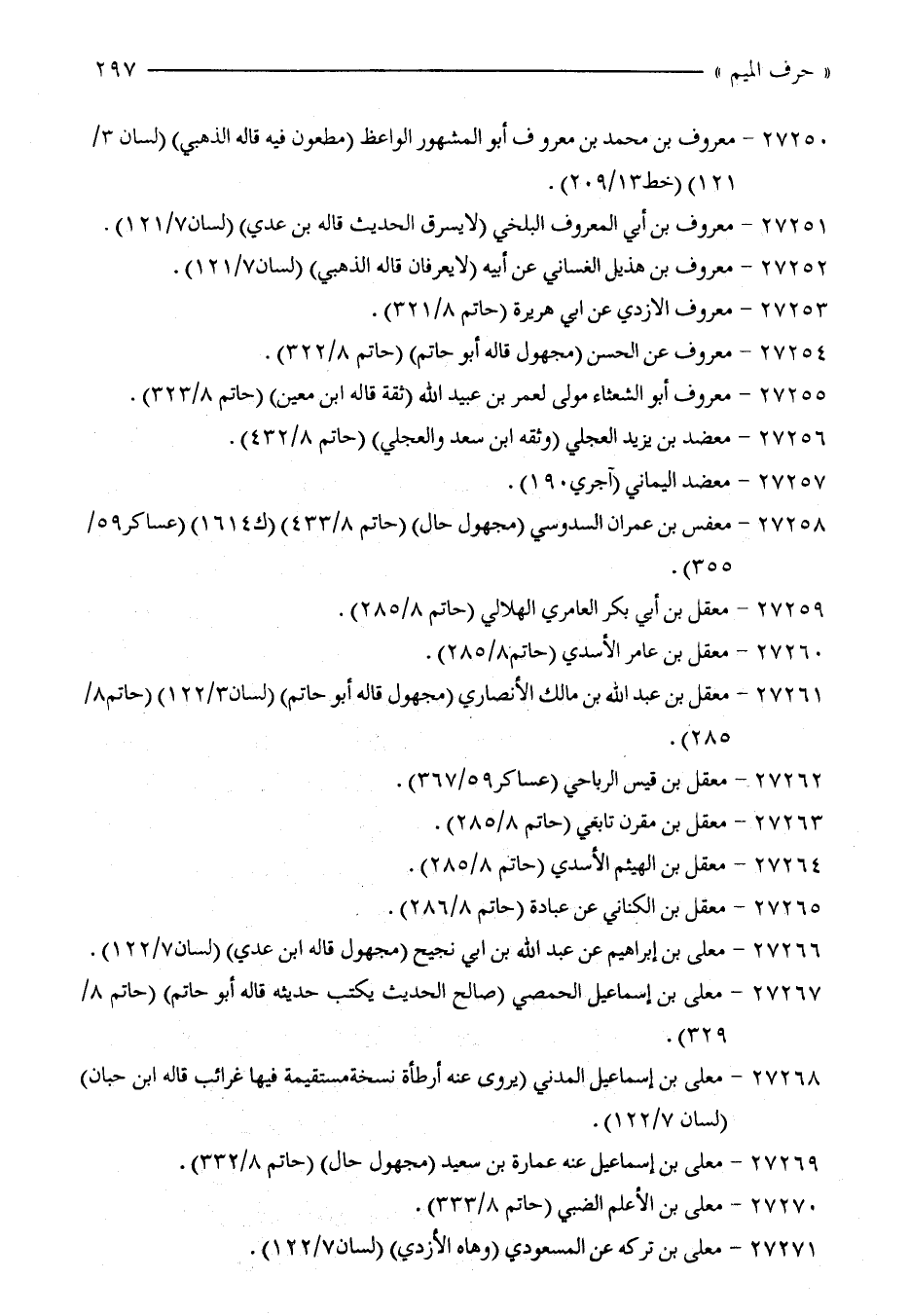 27271 - معلى بن تركه عن المسعودي (وهاه الأزدي) (لسان 7/ 122).