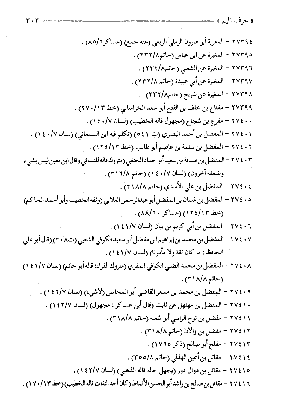 27405 - المفضل بن غسان بن المفضل أبو عبد الرحمن العلابي (وثقه الخطيب وأبو أحمد الحاكم) (خط 13/ 124) (عساكر 60/ 88).