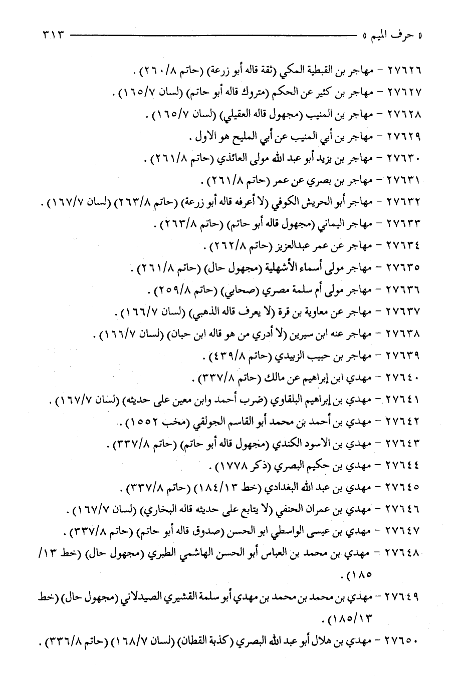 27645 - مهدي بن عبد الله البغدادي (خط 13/ 184) (حاتم 8/ 337).