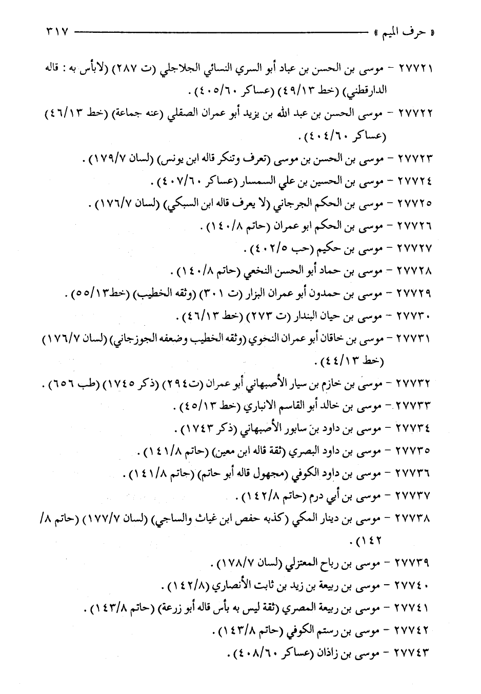27722 - موسى الحسن بن عبد الله بن يزيد أبو عمران الصقلي (عنه جماعة) (خط 13/ 46) (عساكر 60/ 404).
