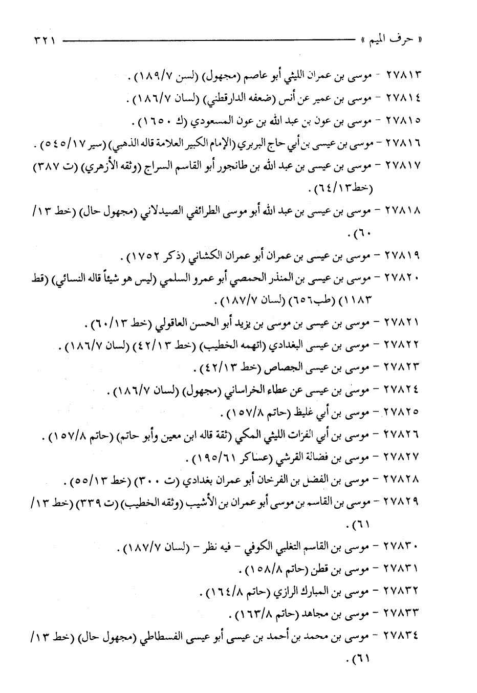 27828 - موسى بن الفضل بن الفرخان أبو عمران بغدادي (ت 300) (خط 13/ 55).
