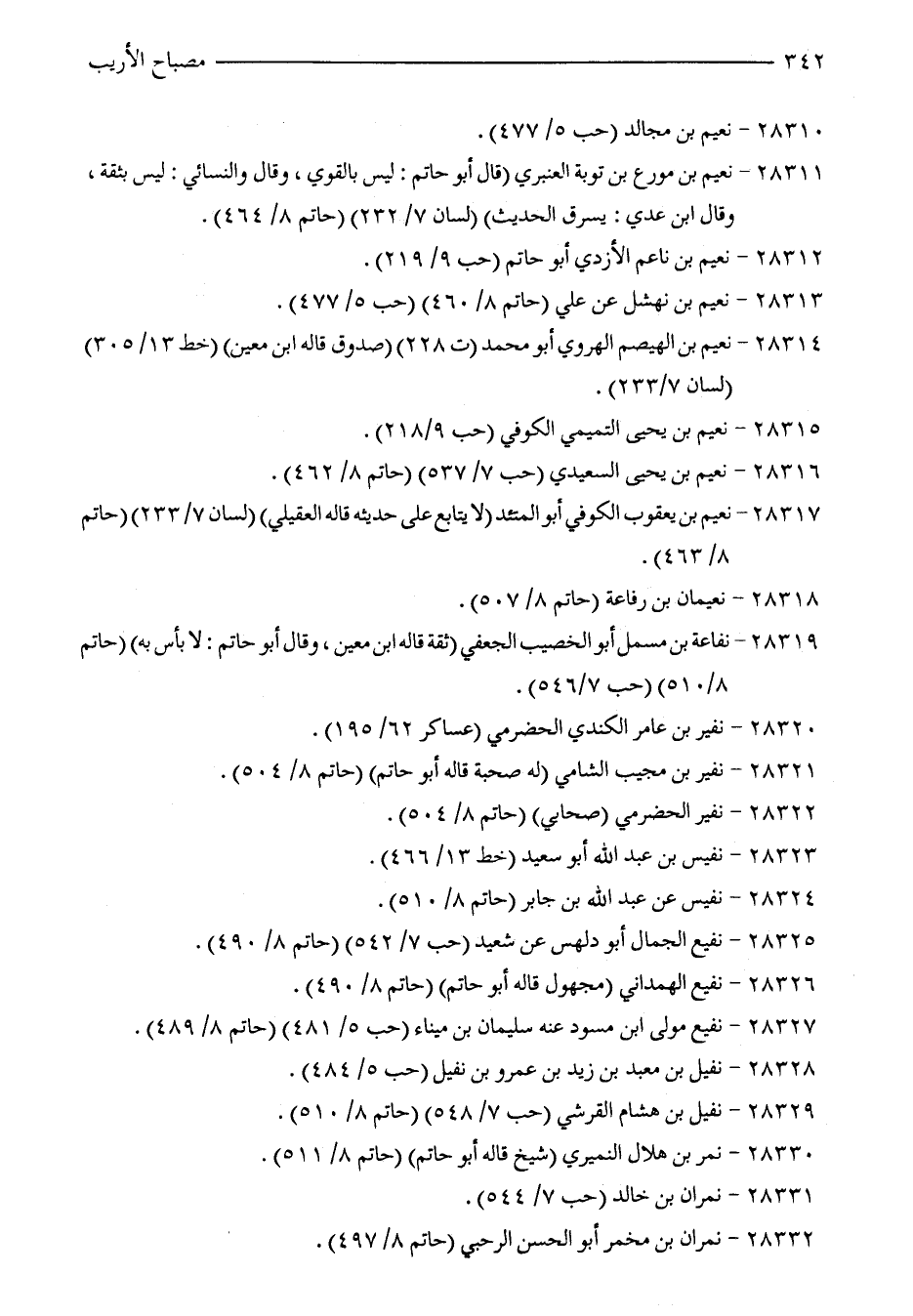 كتاب مصباح الأريب في تقريب الرواة الذين ليسوا في تقريب التهذيب (اسم الجزء: 3)