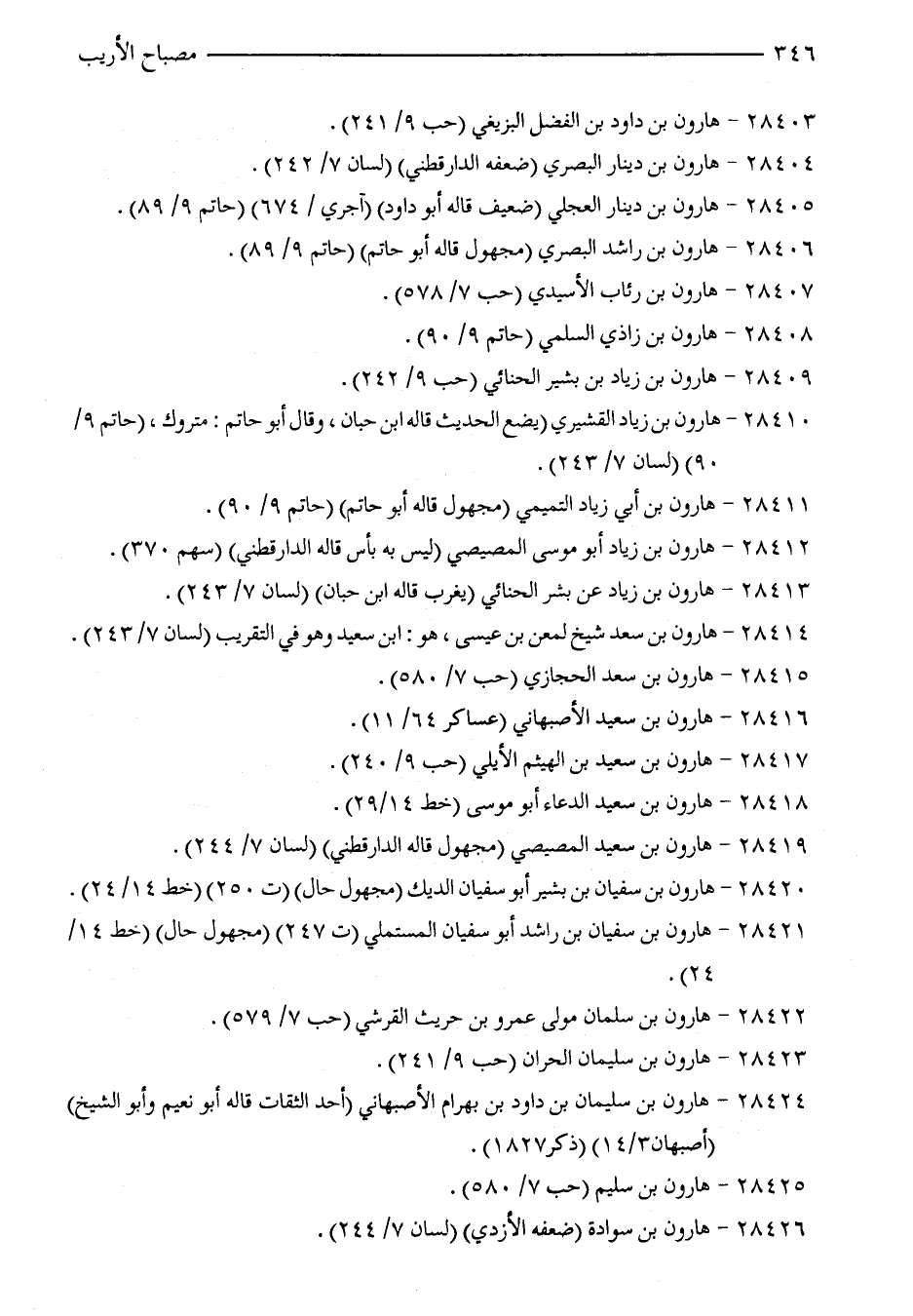 28412 - هارون بن زياد أبو موسى المصيصي (ليس به بأس قاله الدارقطني) (سهم 370).